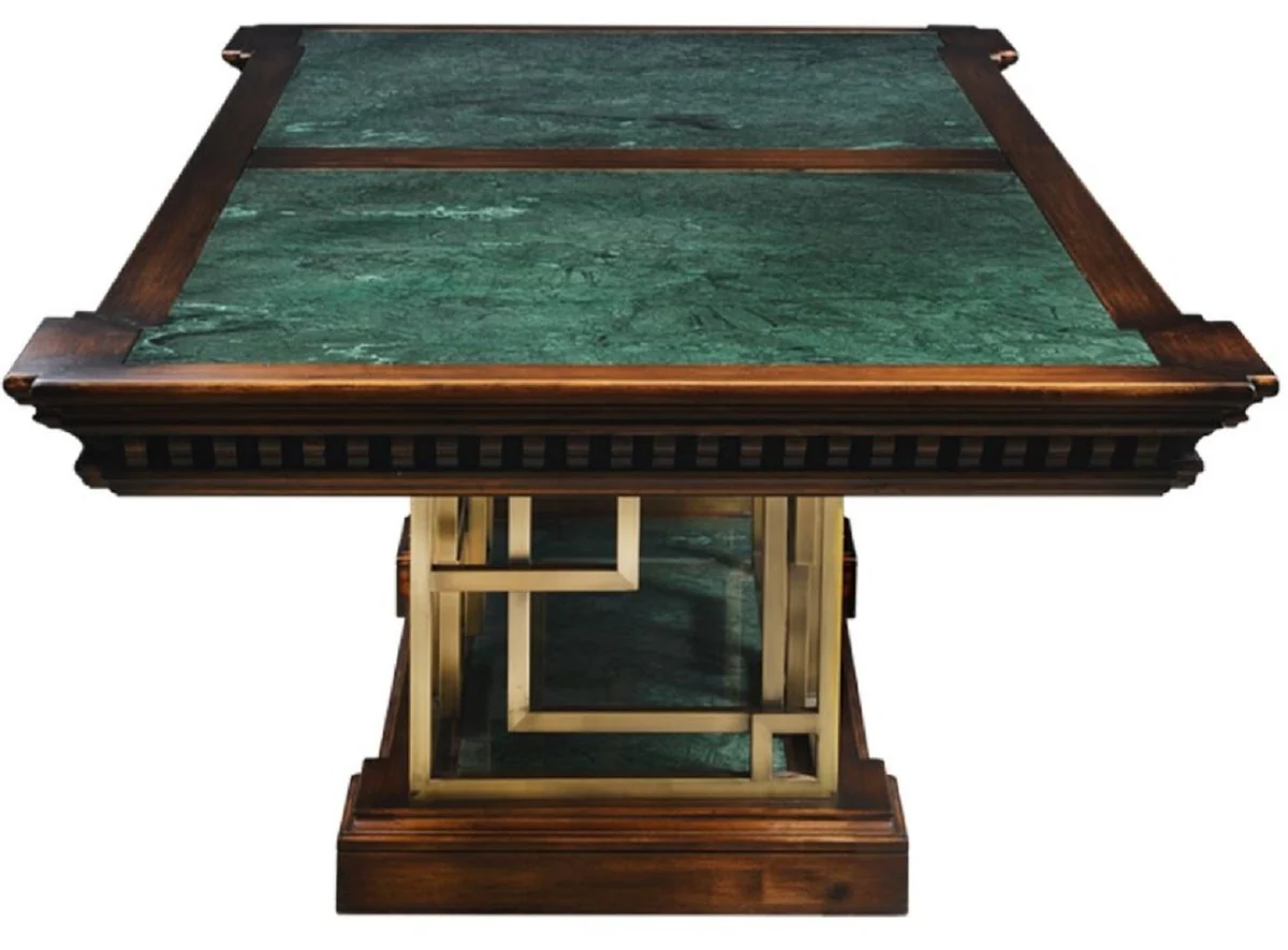 Casa Padrino Mesa de Comedor de Estilo Vintage de Lujo Marr¨®n / Verde / Lat¨®n 250 x 124 x A. 77,5 cm - Mesa de Comedor Rectangular de Madera Maciza - Muebles de Comedor de Estilo Vintage de Lujo