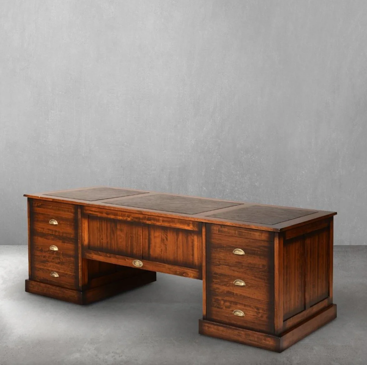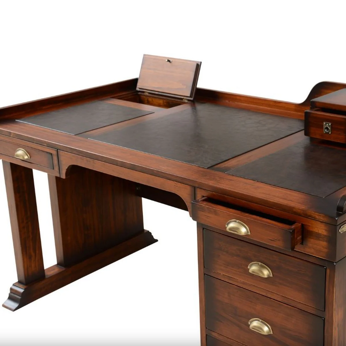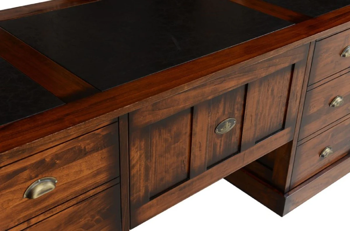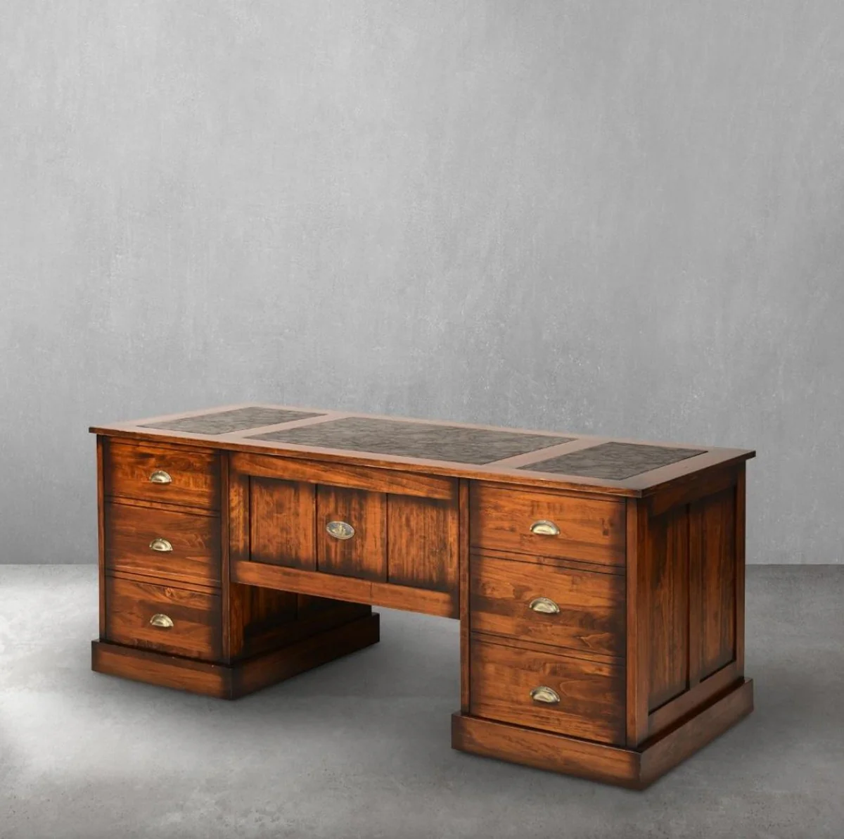 Casa Padrino escritorio de estilo vintage de lujo marrón 160 x 85 x A. 93,5 cm - Mesa de oficina con 7 cajones - Muebles de oficina estilo vintage - Muebles de oficina de madera maciza de lujo