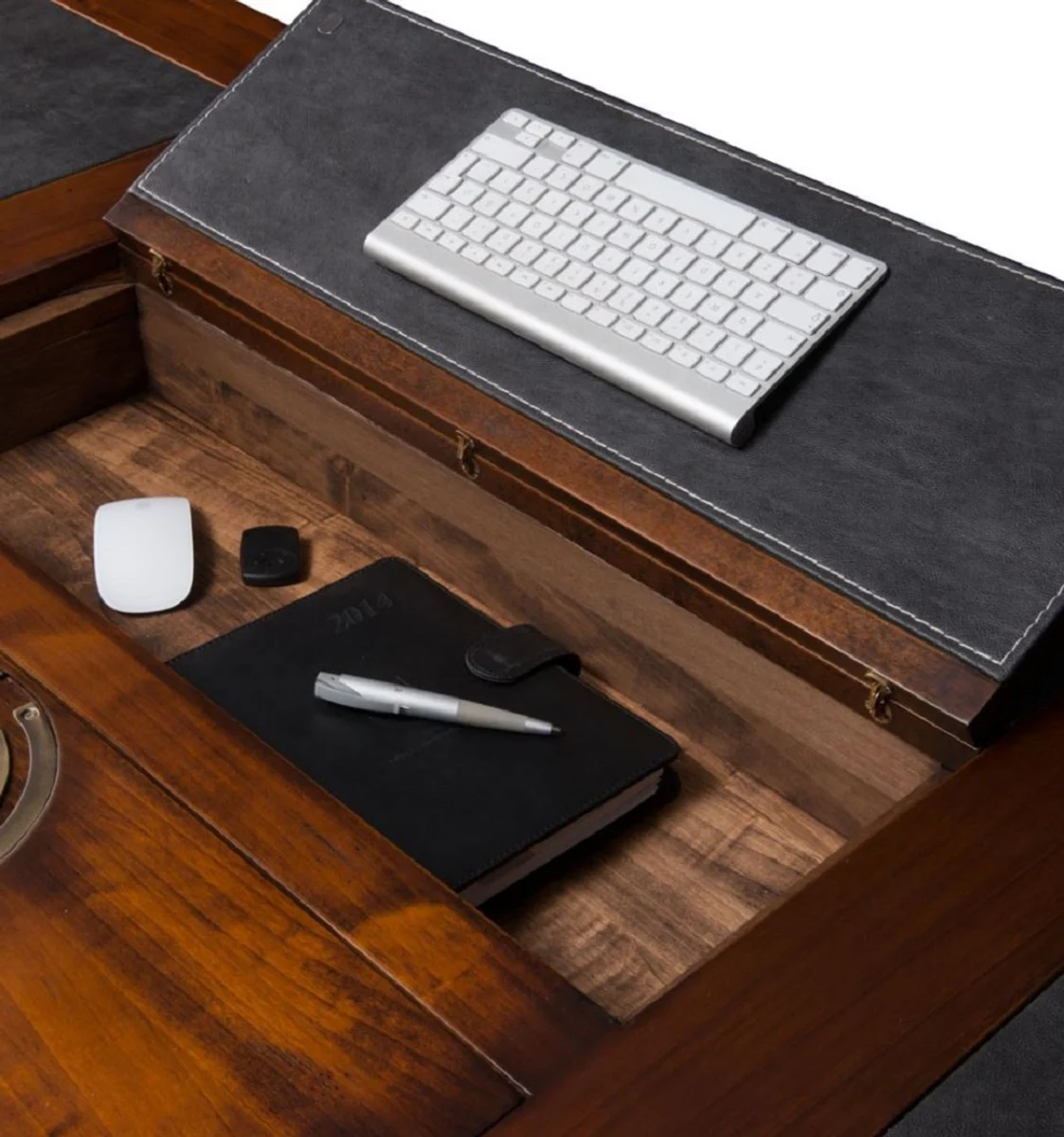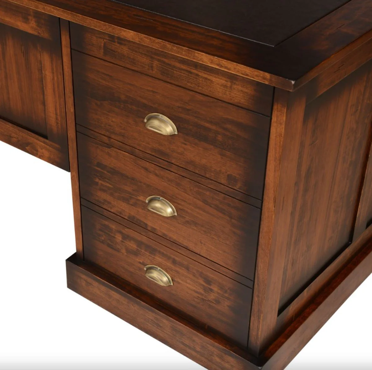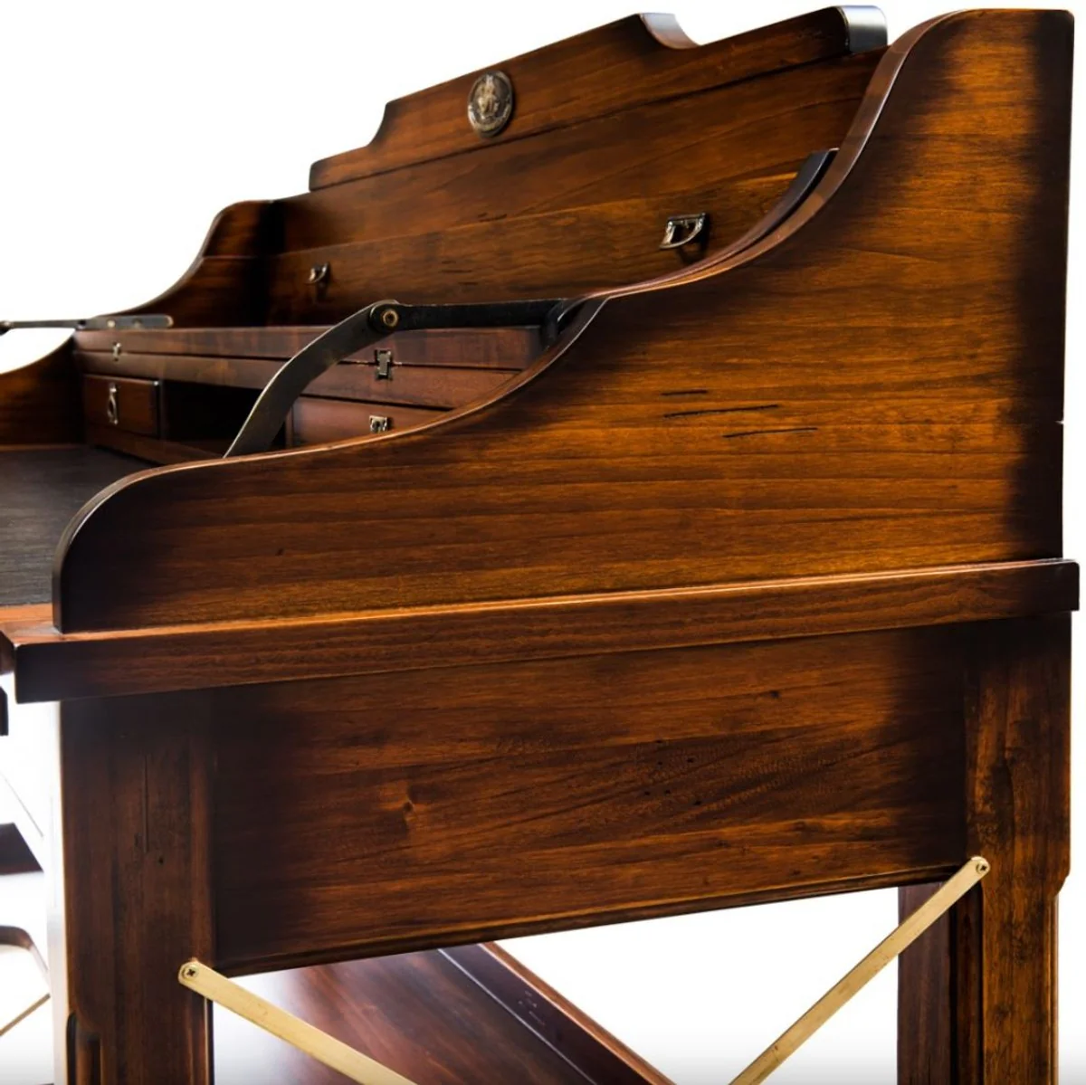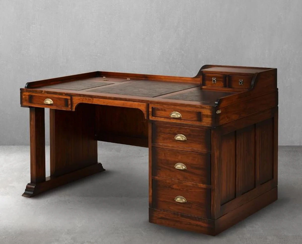 Casa Padrino escritorio de estilo vintage de lujo marrón 160 x 85 x A. 93,5 cm - Mesa de oficina con 7 cajones - Muebles de oficina estilo vintage - Muebles de oficina de madera maciza de lujo