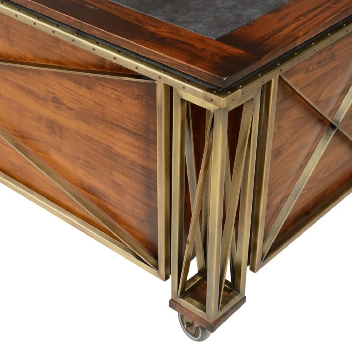 Casa Padrino escritorio de estilo vintage de lujo marrón / latón / negro 234 x 98,5 x A. 75 cm - Mesa de oficina de madera maciza con ruedas - Muebles de oficina estilo vintage
