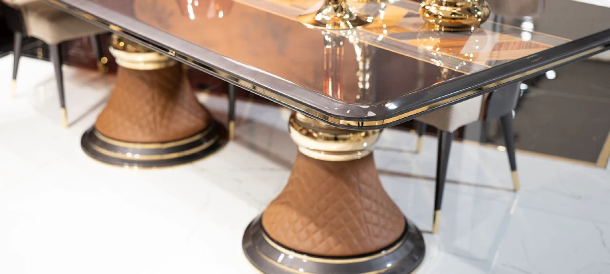Casa Padrino Conjunto de Comedor de Lujo Gris / Marr¨®n / Oro - 1 Mesa de Comedor & 8 Sillas de Comedor - Muebles de Comedor de Lujo - Calidad de Lujo