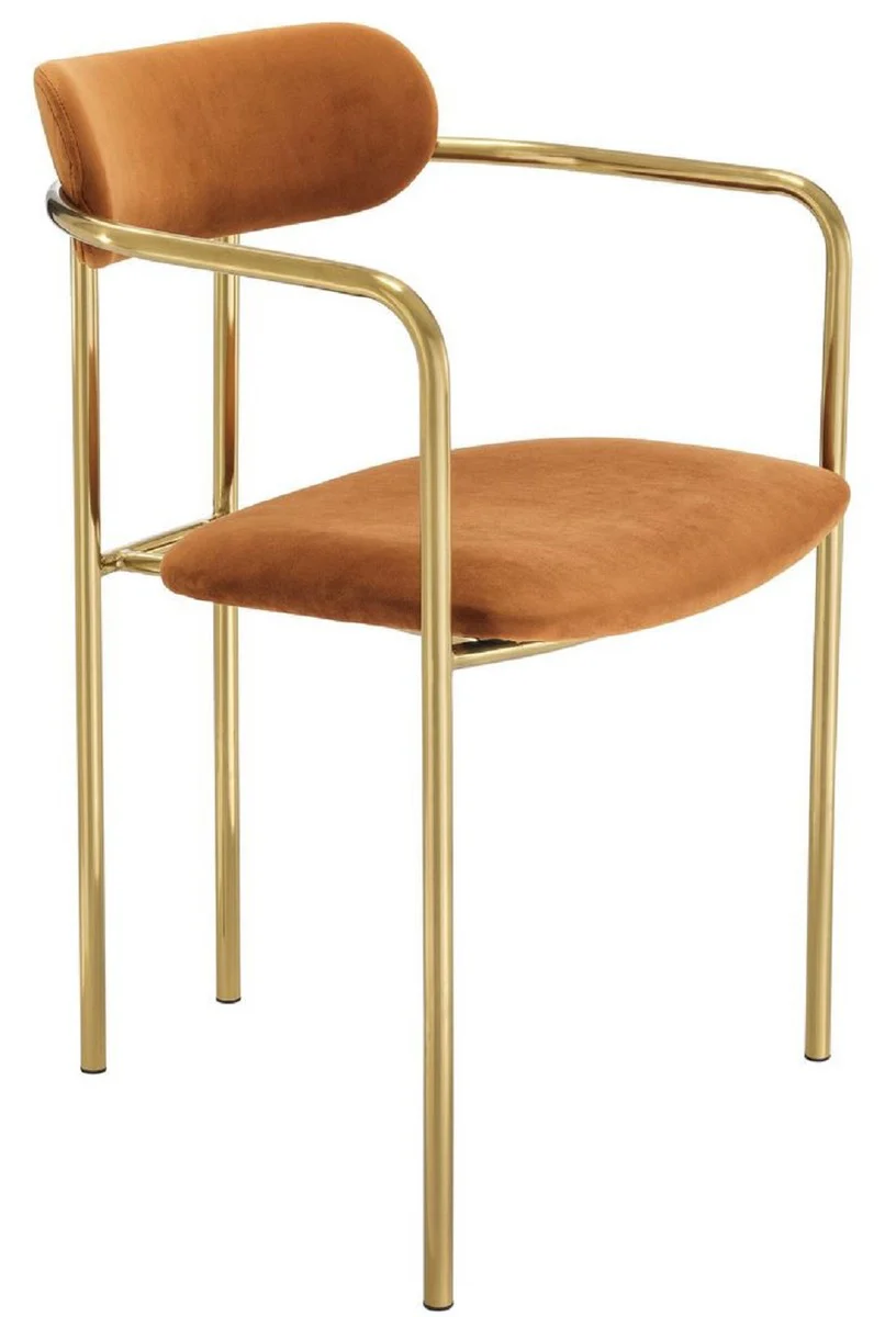 Casa Padrino sillas de comedor de lujo con reposabrazos naranja / oro 53 x 50 x H. 74 cm - Sillas de Cocina con Tela de Terciopelo Fino - Conjunto de Comedor - Muebles de Comedor