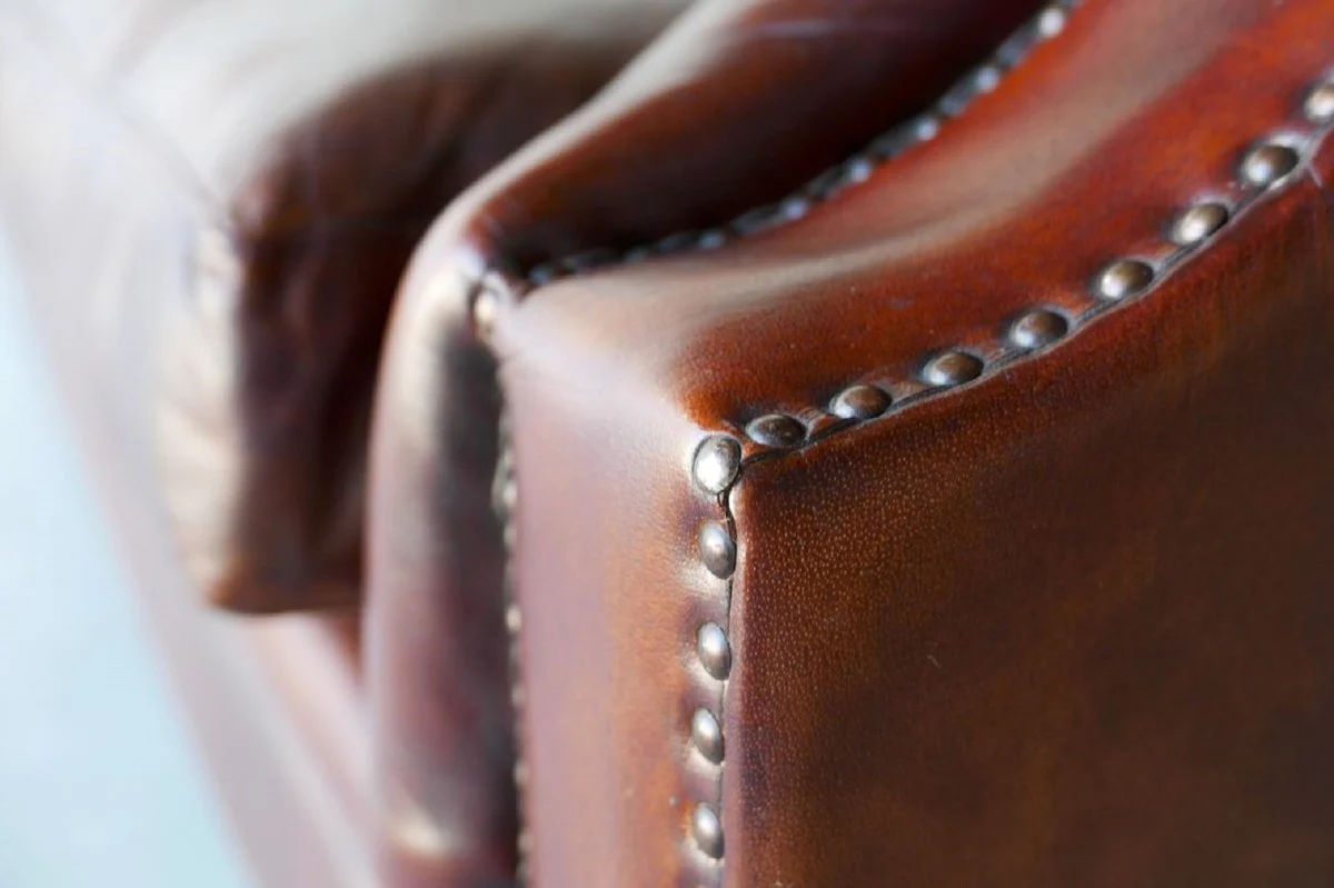 Casa Padrino sof¨¢ de 3 plazas de cuero Chesterfield de lujo marr¨®n 225 x 110 x A. 77 cm - Sof¨¢ de sal¨®n de cuero aut¨¦ntico - Muebles de Sal¨®n Chesterfield