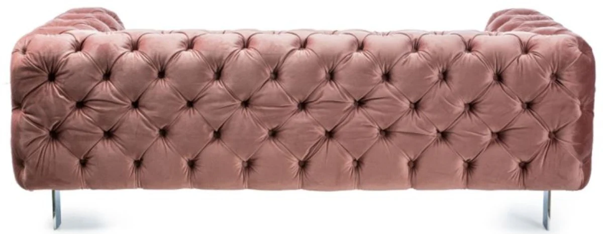 Casa Padrino sof¨¢ de terciopelo Chesterfield de lujo rosa vintage / plata 200 x 100 x A. 68 cm - Muebles de Sala Chesterfield