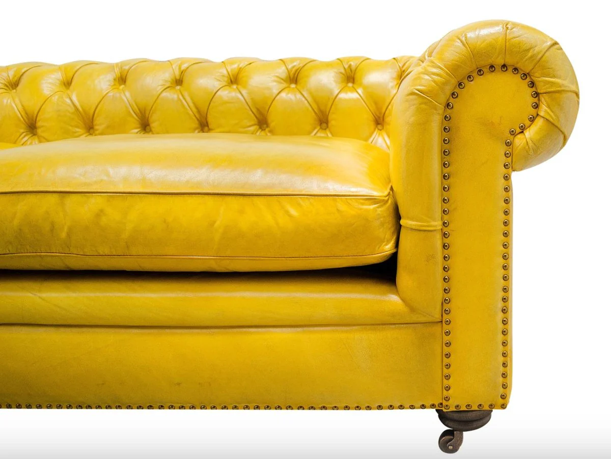 Casa Padrino sof¨¢ chesterfield 2 plazas de lujo amarillo 242 x 100 x H. 71 cm - Muebles de Cuero de Lujo
