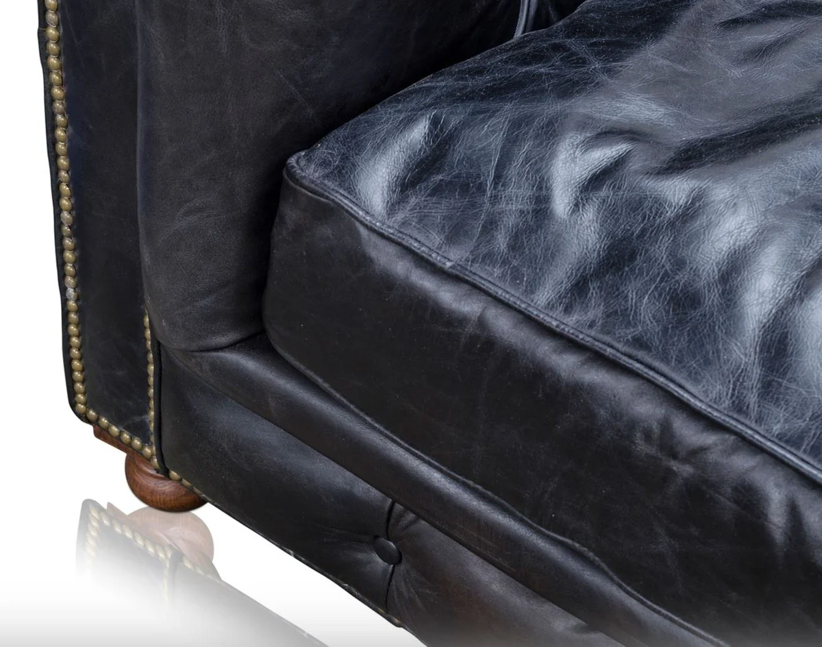 Casa Padrino sof¨¢ 2 plazas de cuero real marr¨®n oscuro 160 x 90 x H. 80 cm - Muebles de Lujo Chesterfield