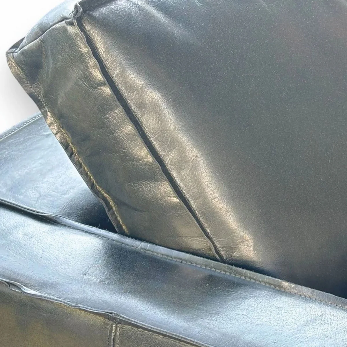Casa Padrino sof¨¢ de cuero de lujo azul / negro 120 cm - Muebles de cuero genuino