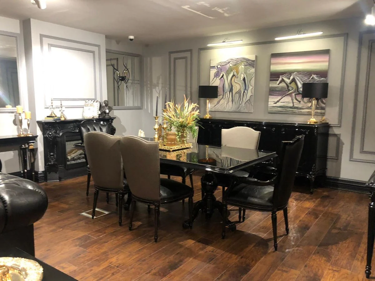 Casa Padrino - Silla de comedor de lujo barroca, cuero sint¨¦tico negro / dorado - Muebles hechos a mano