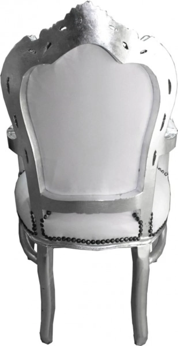 Presidente Cena Casa Padrino barroco con apoyabrazos aspecto de cuero blanco / plata - estilo antiguo Muebles