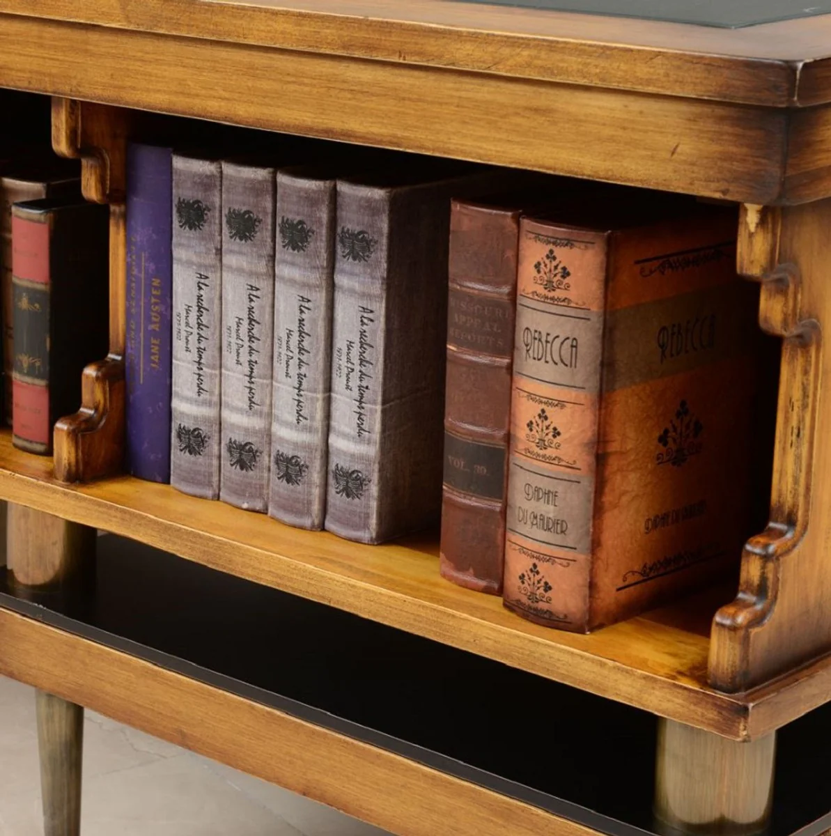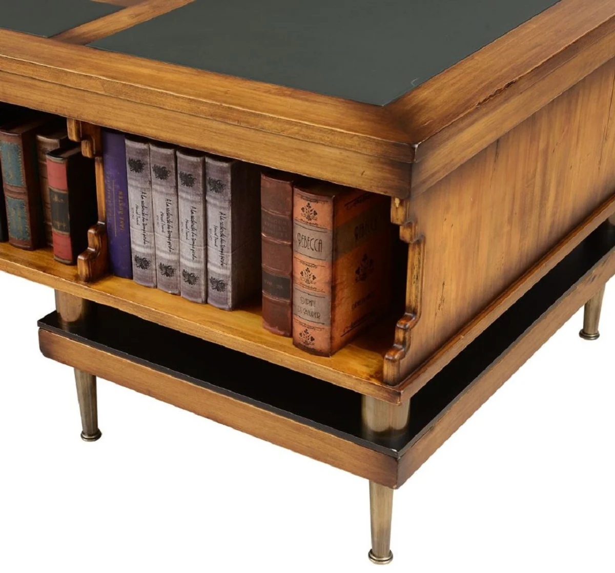 Casa Padrino escritorio de estilo vintage de lujo natural / marrón / negro / verde 252 x 102 x A. 77 cm - Mesa de oficina de madera maciza con cuero artificial - Muebles de oficina estilo vintage