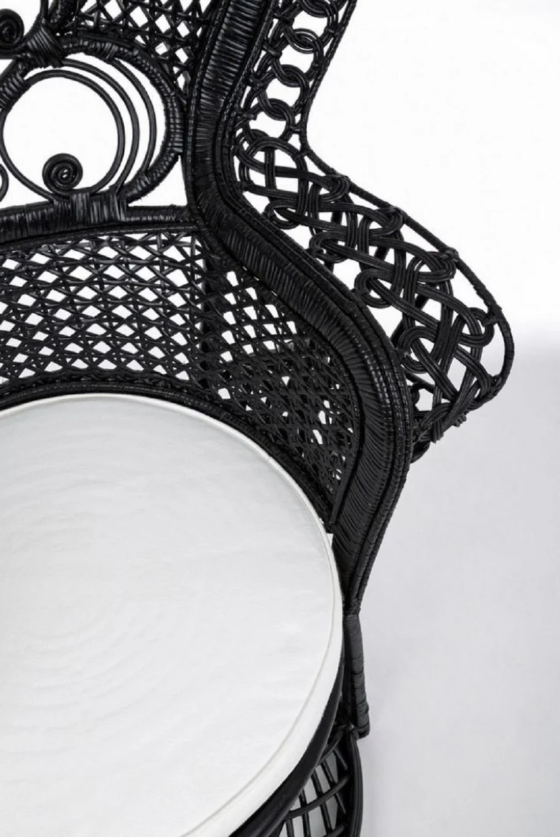 Casa Padrino sill¨®n de jard¨ªn de lujo negro / blanco 106 x 71 x A. 148 cm - Sill¨®n de rat¨¢n de estilo vintage con coj¨ªn de asiento - Muebles de rat¨¢n de estilo vintage - Muebles de jard¨ªn y patio