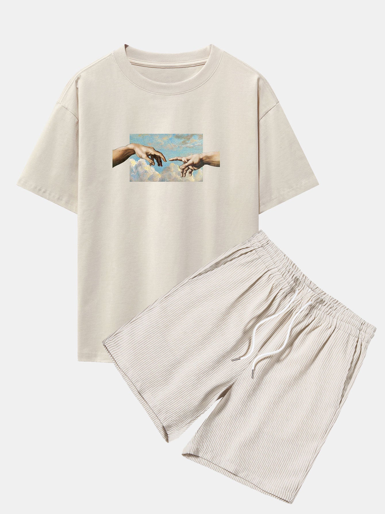 Heavy Weight Oversize T-Shirt & Loose Fit Drawstring Twill jacquard Shorts