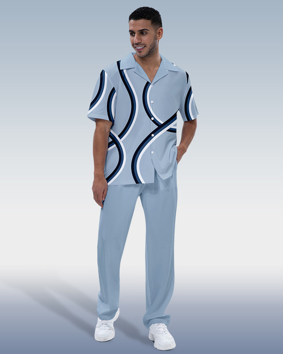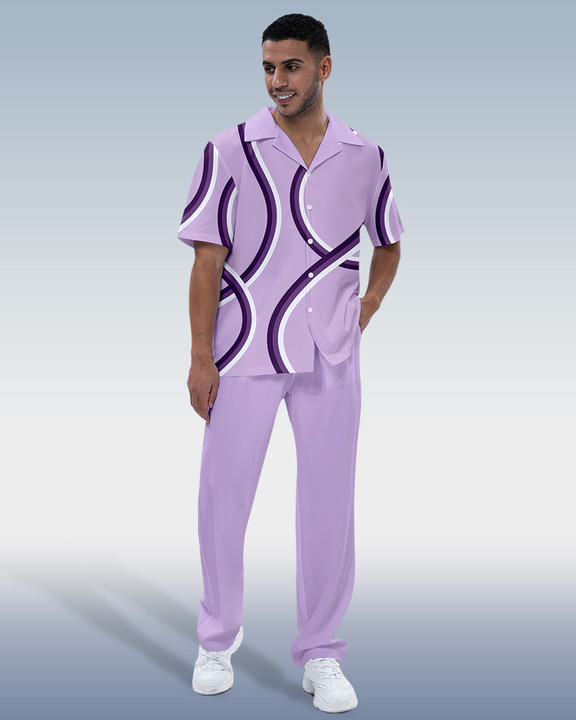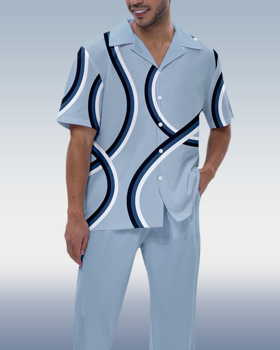 Suitmens Men's Color Block Print Short Sleeve Walking Suit 199