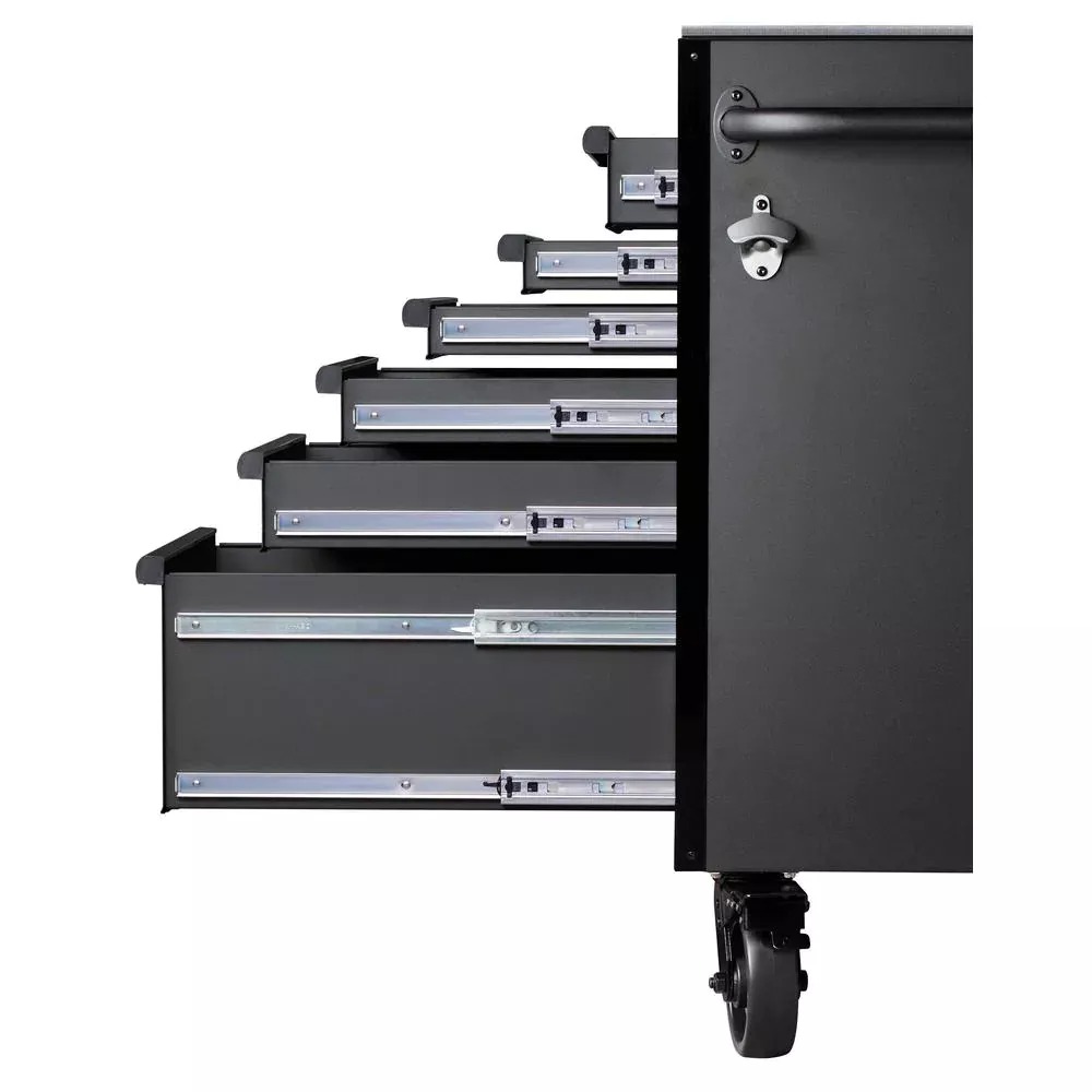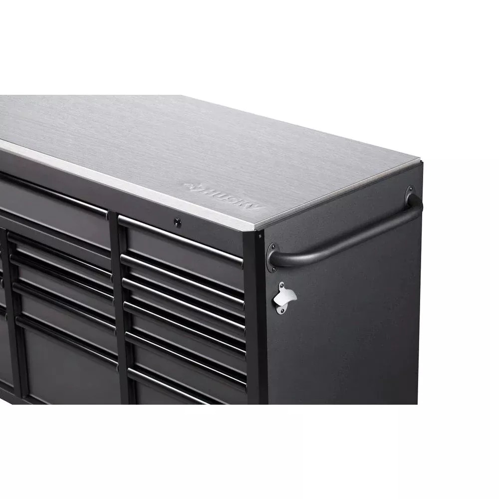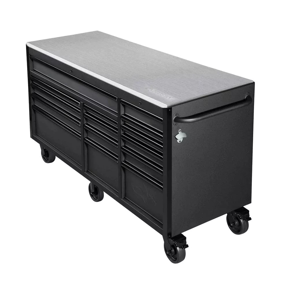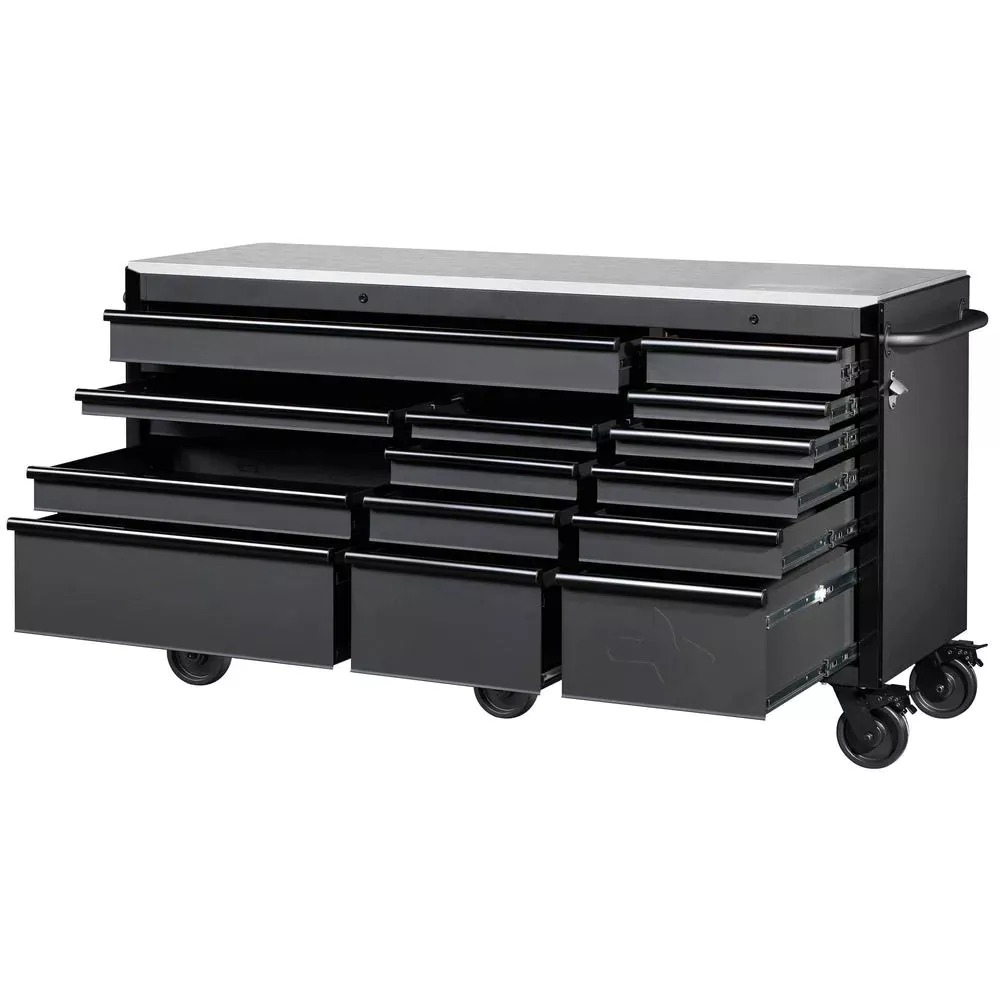 HEAVY-DUTY 72 IN. W 15-DRAWER, DEEP TOOL CHEST MOBILE WORKBENCH IN MATTE BLACK WITH STAINLESS STEEL TOP AND DUAL LOCKS