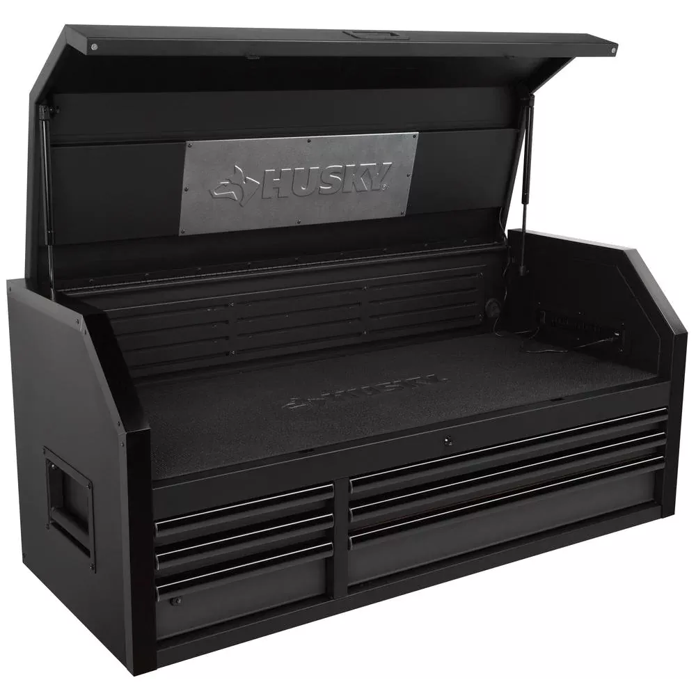 INDUSTRIAL 52 IN. W X 21.5 IN. D 6-DRAWER TOOL CHEST WITH PULL-OUT WORK SURFACE AND LED LIGHT IN MATTE BLACK