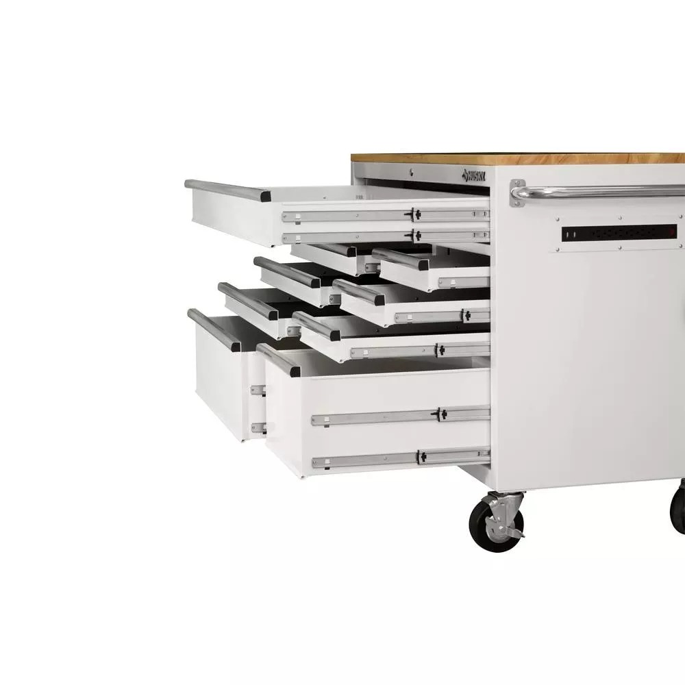 61 IN. W X 23 IN. D HEAVY-DUTY 15-DRAWER MOBILE WORKBENCH WITH SOLID WOOD TOP