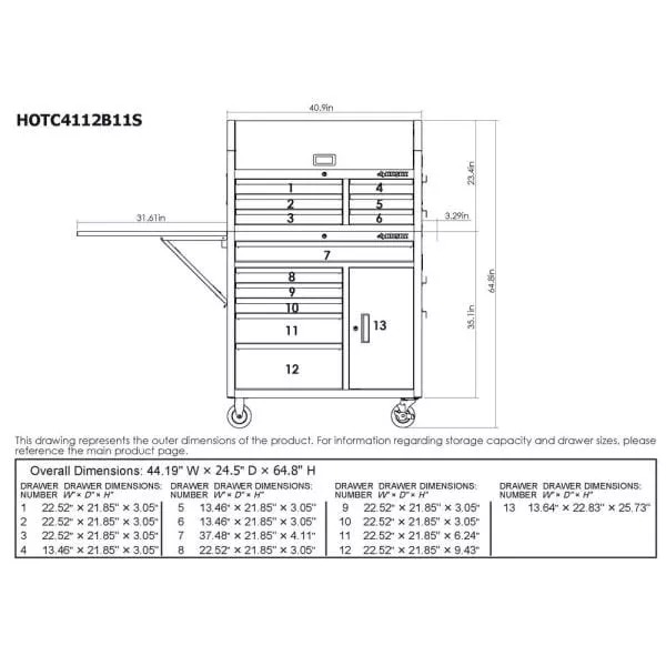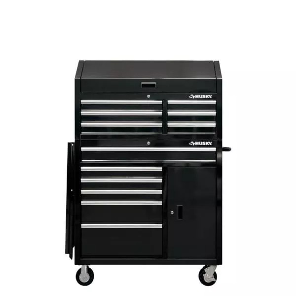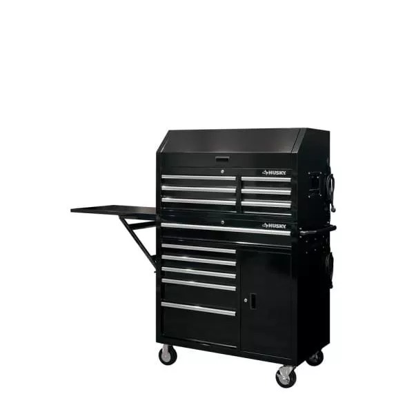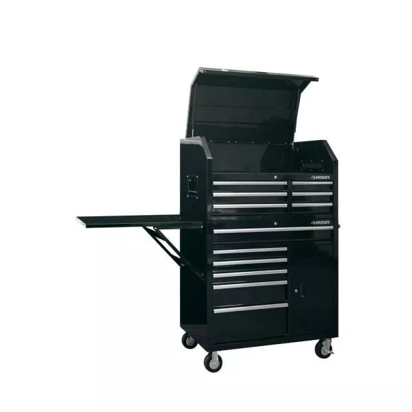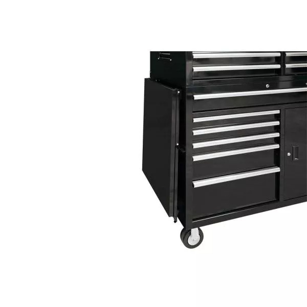41 IN. W 12-DRAWER DEEP COMBINATION TOOL CHEST AND ROLLING CABINET SET IN GLOSS BLACK WITH SIDE TABLE