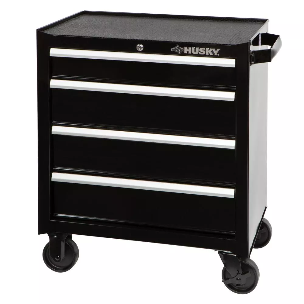 33 IN 4-DRAWER MECHANICS CART WITH EXTENDED SIDE TABLE AND BOTTLE TRAY